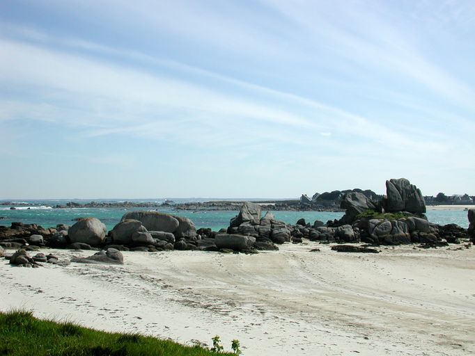 Vue du chenal d'entrée de Pontusval bordé par de nombreux rochersImmatriculation