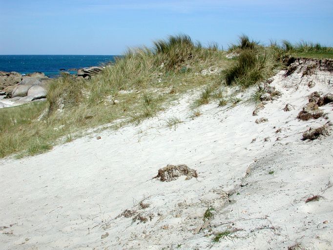 Inexorablement, les dunes reculent faisant basculer sur la plage les blockhausImmatriculation