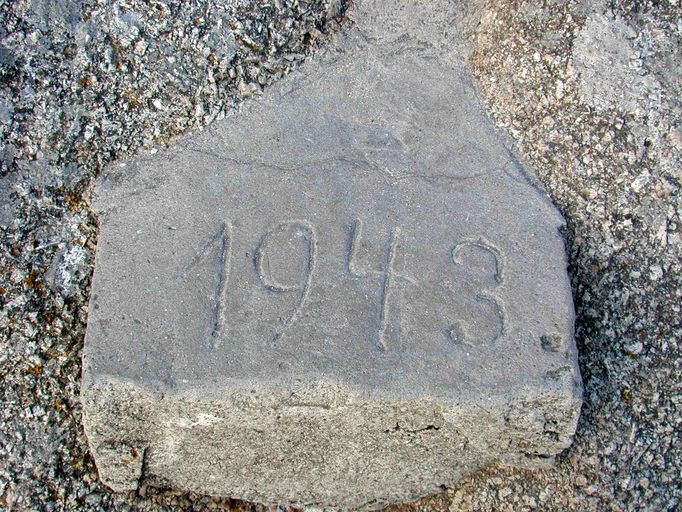 Vue de la marche menant au poste d'observation et portant la date de 1943Immatriculation