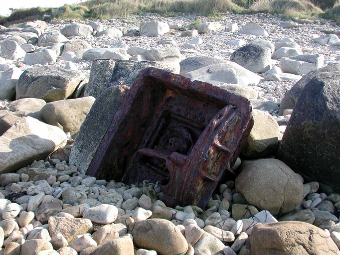Vue d'un canon Skoda de 47 mm projeté sur la grève de Penn EnezImmatriculation