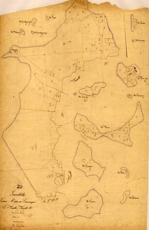 La presqu'île Sainte-Marguerite et les îlots en 1842 : de simples pâtures, extrait du cadastre ancien dit Napoléonien, 1842, Archives départementales du FinistèreImmatriculation