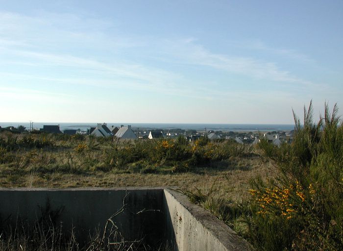 Vue de l'Aber Wrac'h depuis la batterie lourde de Croaz Huella, au premier-plan un bassin en béton arméImmatriculation