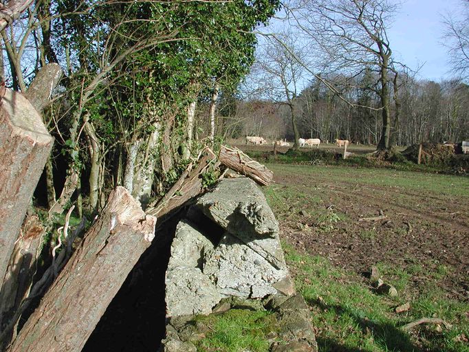 Vue d'un mur latéral réalisé en maçonnerie et béton armé (état en 2003)Immatriculation