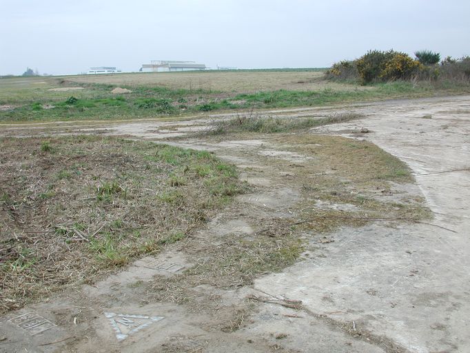 Vue de l'aire de compensation pour le réglage des compas magnétiques de bord des avions (état en 2003). Au premier plan à gauche, les repères des points cardinaux : ici, le repère Norden (nord)Immatriculation