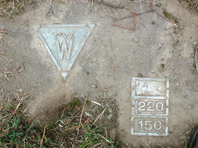 Vue de l'aire de compensation pour le réglage des compas magnétiques de bord des avions (état en 2003). ici, le repère Westen (ouest) et la gradation en dizaine de degrésImmatriculation