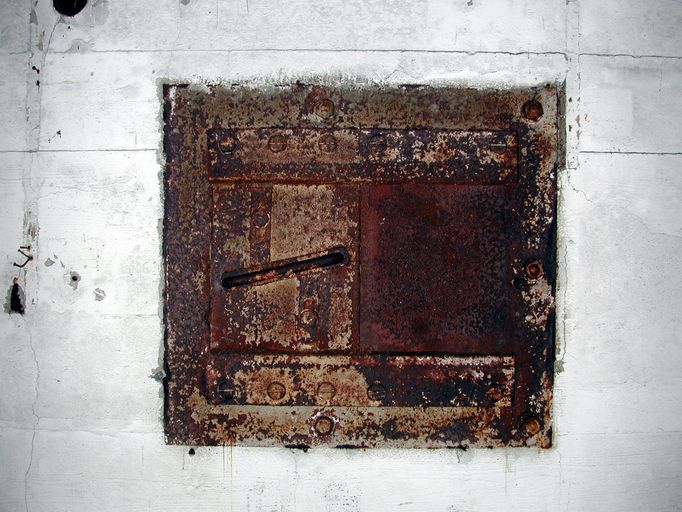 Landéda, île Cézon : abri pour un groupe de type 501 du fort Cézon, vue intérieure, créneau blindé de défenseImmatriculation