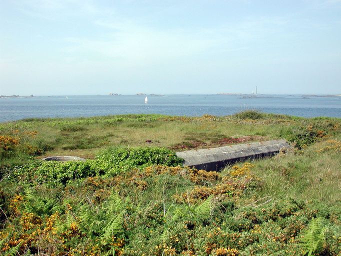 Landéda, île Cézon : vue de situation de l'abri de type 621. Encastré dans le rocher, il est parfaitement défiléImmatriculation
