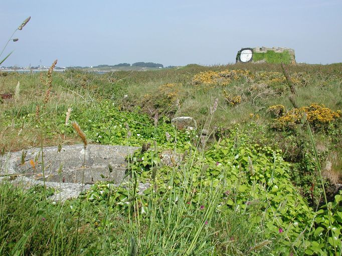 Landéda, île Cézon : vue du Tobrouk de l'abri de type 621. Situé en dehors du fort (quoique relié par des tranchées bétonnées), l'abri doit pouvoir servir de réduit à 10 soldatsImmatriculation