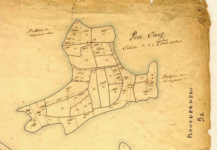 Plan de situation de la presqu'île de Penn Enez, Plouguerneau, extrait du cadastre ancien, vers 1840, Archives départementales du FinistèreImmatriculation