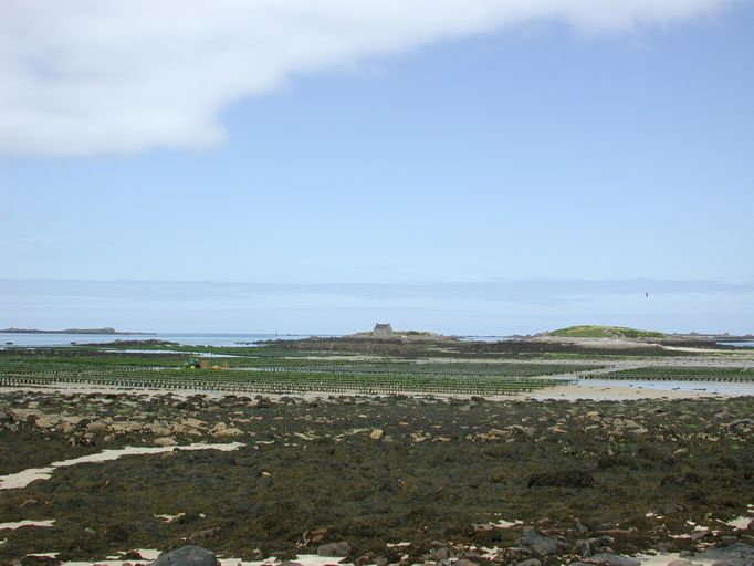 Vue des petites îles Wrac'h à marée basse depuis le poste d'observation et de tir (état en 2003)Immatriculation