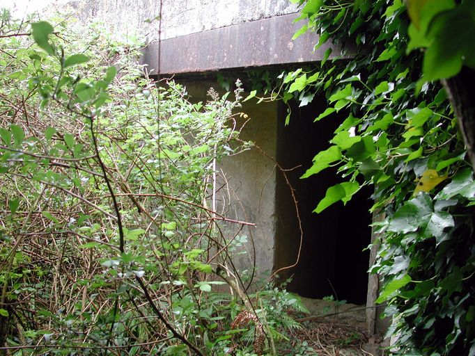 Vue de l'entrée de la casemate envahie par la végétationImmatriculation