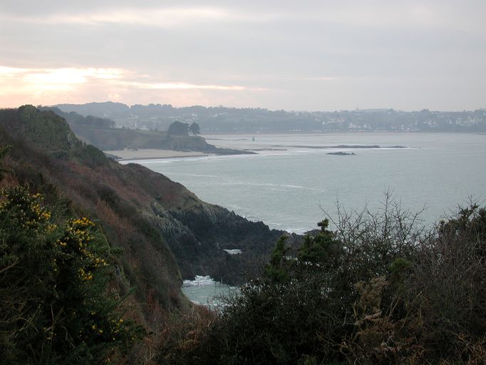 Plestin-les-Grèves : la plage du fond de la baie de Locquirec depuis le poste d'observation de la pointe de l'ArmoriqueImmatriculation