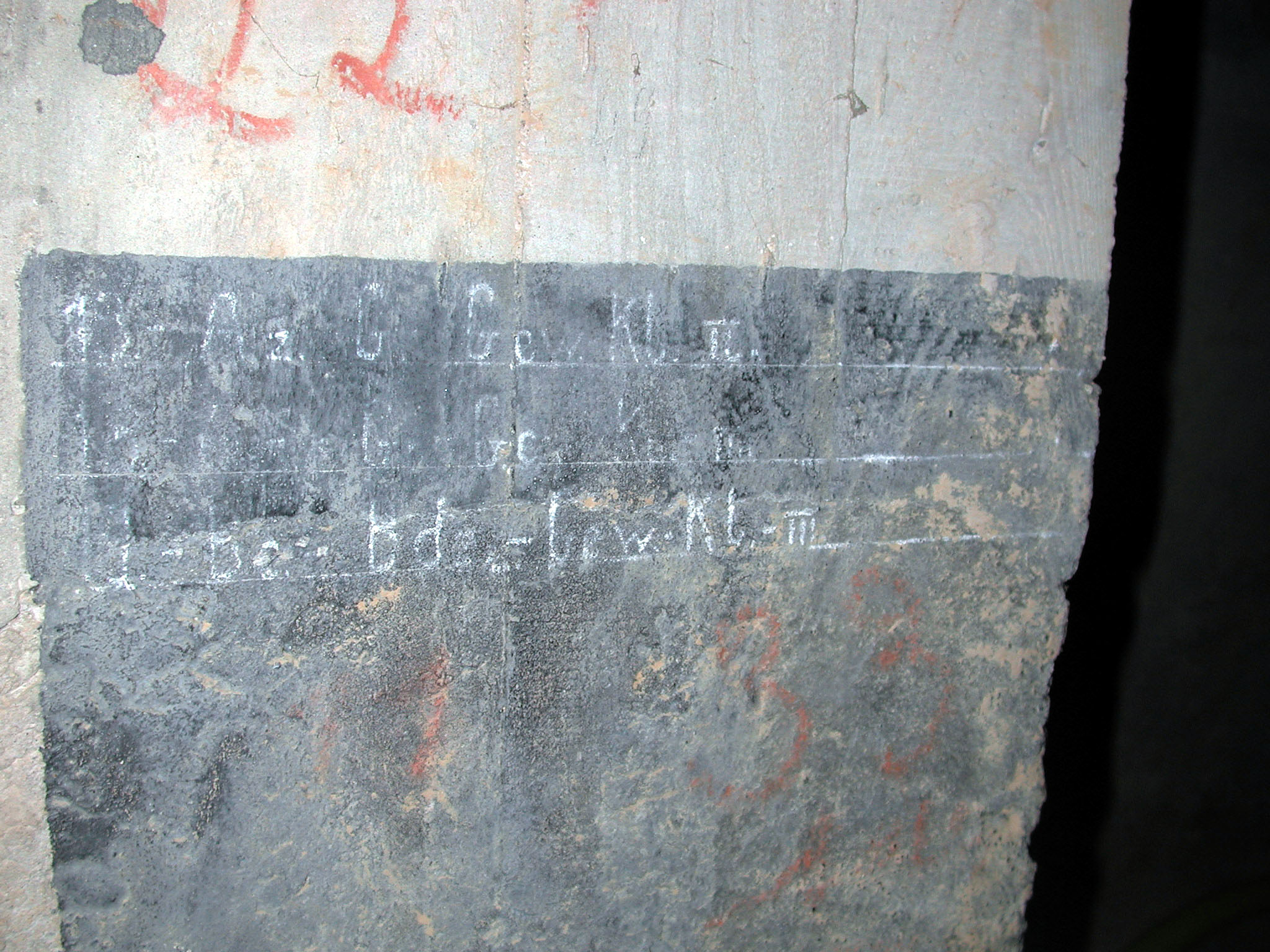 Vue de diverses inscriptions situées dans l'entrée de l'un des magasins de munitionsImmatriculation