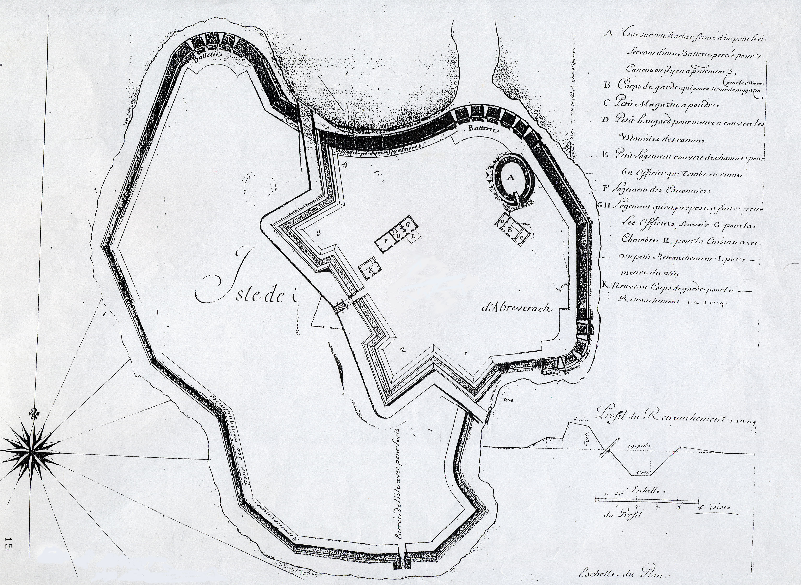 Plan du fort Cézon avec ses batteries, cour, corps de garde, casernes, magasins, enceinte et retranchements, fait à Brest le 31 octobre 1704 par Robelin fils (Yann Le Nestour - association Cézon, document n° 15)Immatriculation