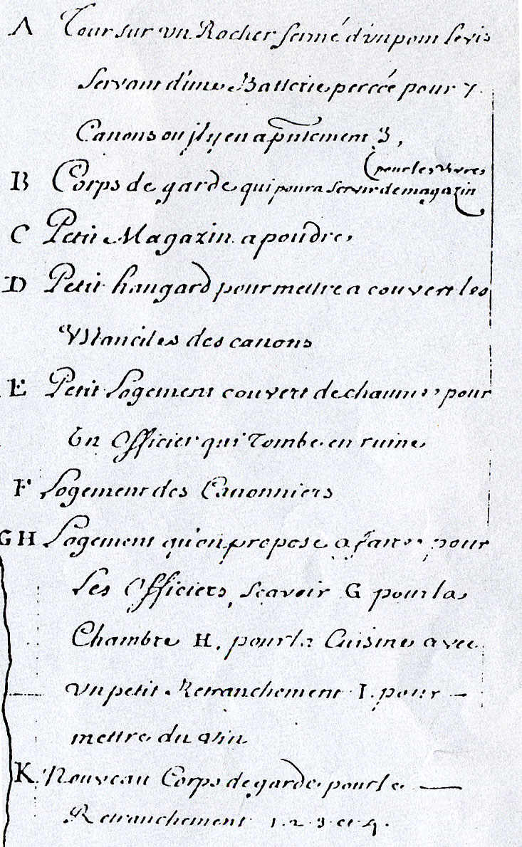 Plan du fort Cézon avec ses batteries, cour, corps de garde, casernes, magasins, enceinte et retranchements, fait à Brest le 31 octobre 1704 par Robelin fils (Yann Le Nestour - association Cézon, document n° 15)Immatriculation
