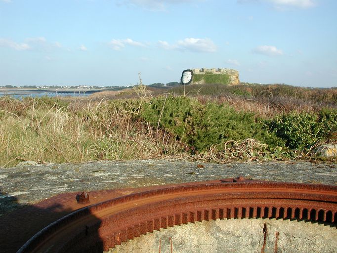 Landéda, île Cézon : Tobrouk pour tourelle de char. Autre angle de vue avec en arrière-plan, la tour d'artillerieImmatriculation