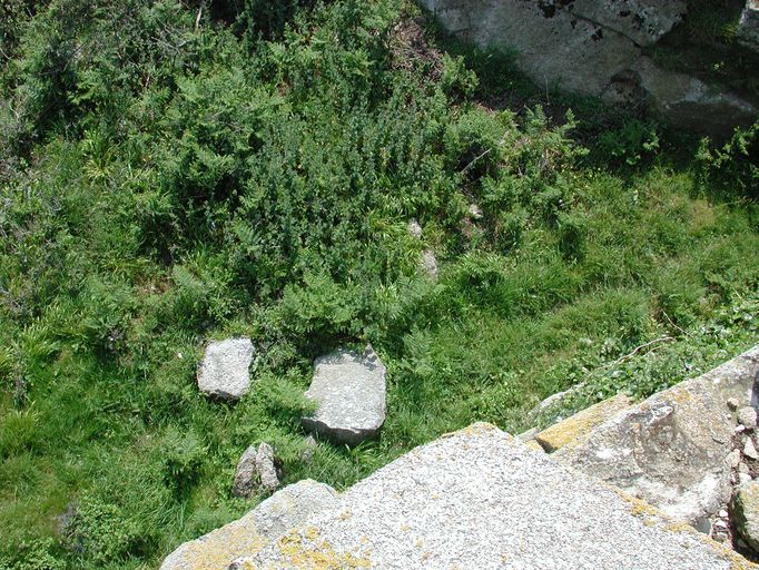 Vue de la tour d'artillerie du fort Cézon : effondrement de la tour côté Est. Pierres tombées au pied de la tour. Etat au 1er juin 2003Immatriculation