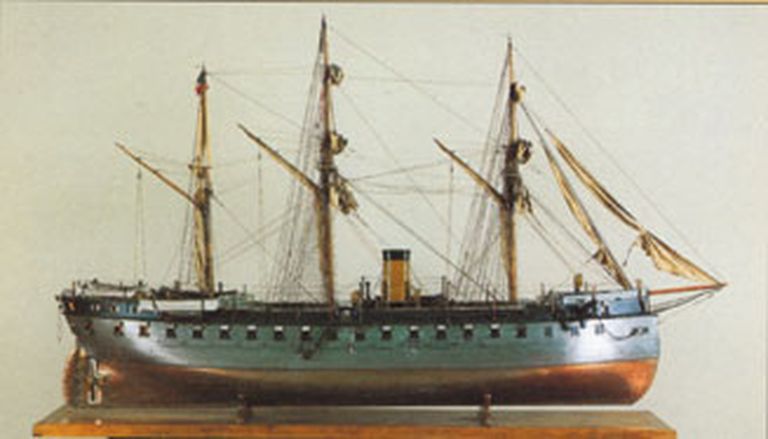 Fig. 12 - Frégate cuirassée. Premier modèle d'un navire à coque métallique blindée, mû à la vapeur (1858), Archéam, n° 10, 2002-2003Immatriculation