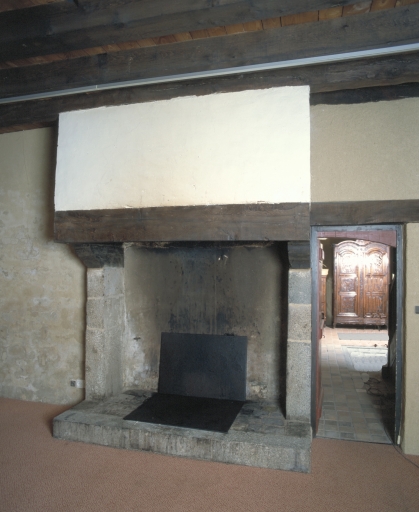 Logis d'entrée : ancienne chambre basse : vue générale cheminée (datée 1832)Immatriculation