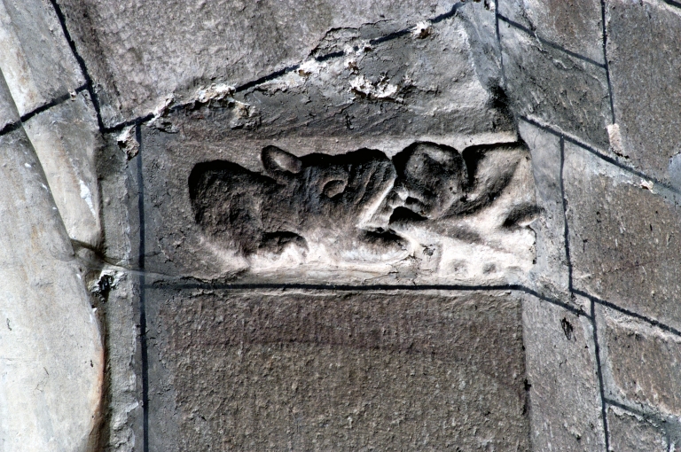 Décor intérieur, bas-relief : tête d'animalImmatriculation
