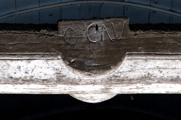 2e entrait à partir de l'est, face ouest, inscription gravée : O. CAVImmatriculation