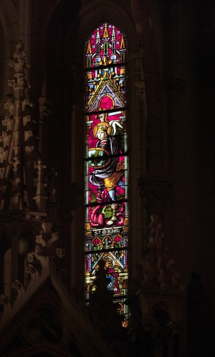 Ensemble de 7 verrières décoratives ou à personnages du choeur (baies 0, 1 à 6) : Sacré Coeur, Saint Martin, Saint Michel, et rose occidentale,
