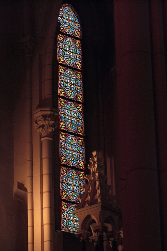 Ensemble de 7 verrières décoratives ou à personnages du choeur (baies 0, 1 à 6) : Sacré Coeur, Saint Martin, Saint Michel, et rose occidentale,