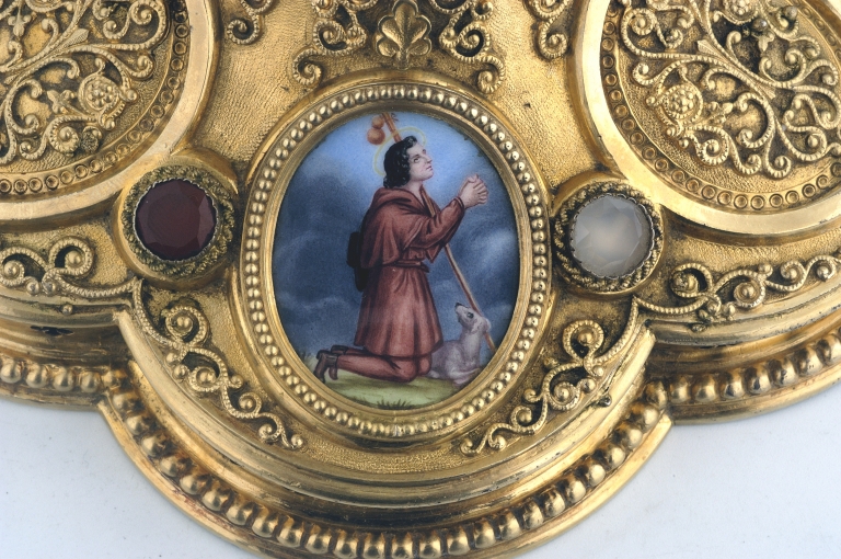 Pied du calice, décor d'un médaillon : Saint Dominique ?Immatriculation