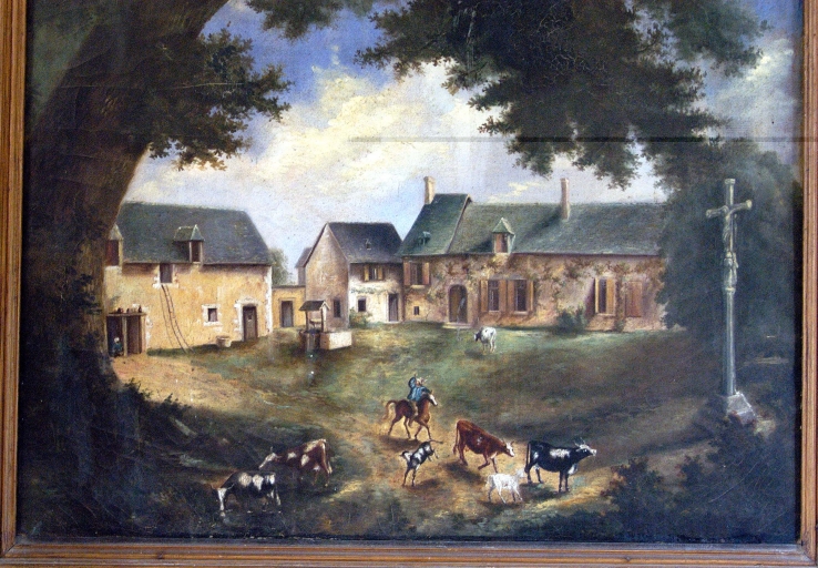 Tableau de l'ancienne Moinerie situé dans le trumeau de la salle à manger et peint par Octave du Breil Le BretonImmatriculation