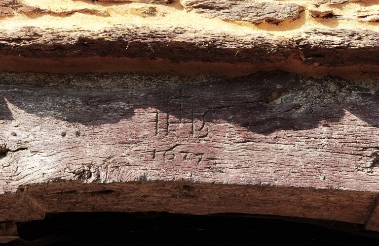 Date et inscription portées sur le linteau de la porte d'entréeImmatriculation