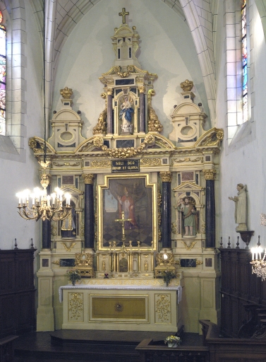 Ensemble du maître-autel : autel, tabernacle, retable, 2 gradins d'autel, 2 degrés d'autel,