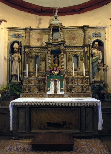 Ensemble du maître-autel : autel, tabernacle, 2 gradins d'autel, exposition, retable, 2 degrés d'autel,