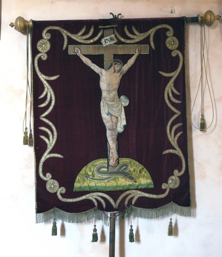Bannière de procession : Vierge à l'Enfant, Christ en croix,