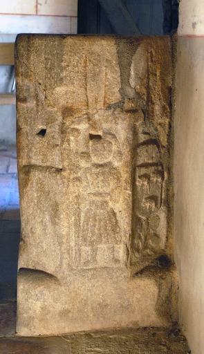 Détail du décor : homme d'armes (?) et armoiries de la famille GléImmatriculation