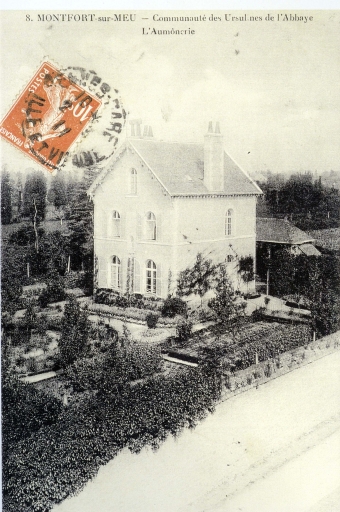 Carte postale ancienne. Montfort-sur-Meu. Communauté des Ursulines de l'Abbaye. L'Aumônerie. Cliché Ch. Legendre, Montfort-sur-Meu. Vers 1911. (Ecomusée du Pays de Montfort).