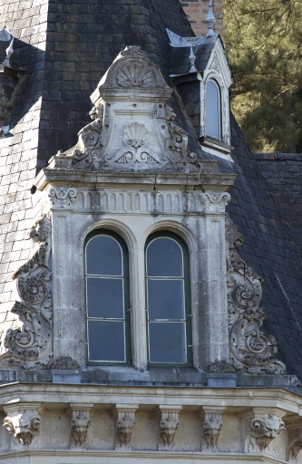 Façade nord : détail de la lucarne sur la tourelleImmatriculation