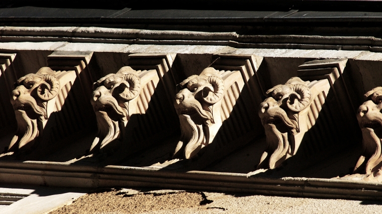 Façade sud : détail de la cornicheImmatriculation