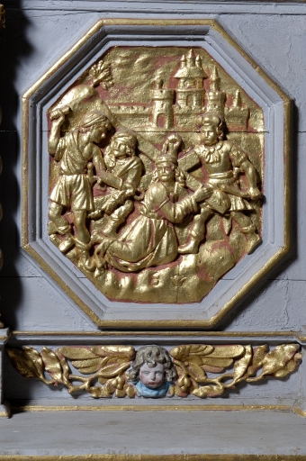 Ensemble de 2 demi-reliefs : Flagellation du Christ, Portement de croix,