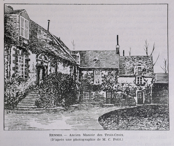Ancien manoir des Trois-Croix, d'après une photographie de M. C. Petit (Banéat)Immatriculation