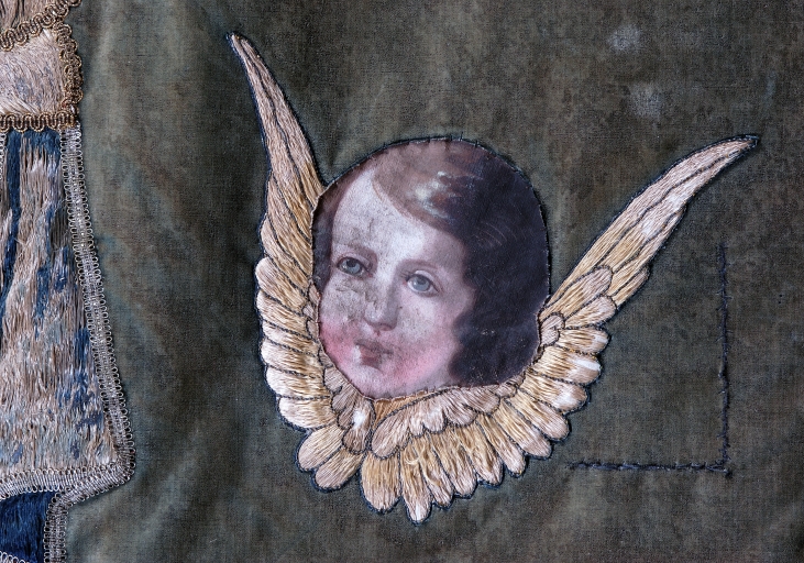 Bannière de procession : Vierge à l'Enfant, Christ en croix,