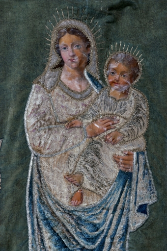 Bannière de procession : Vierge à l'Enfant, Christ en croix,