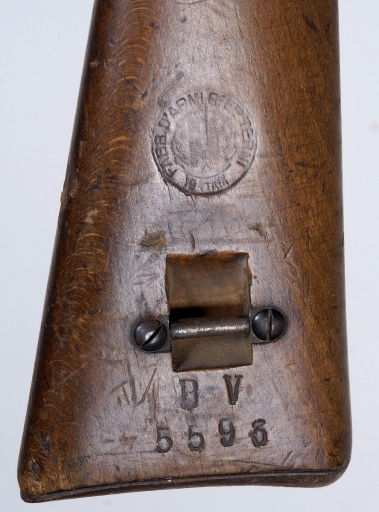 Carabine Mannlicher Carcano : détail de la crosseImmatriculation