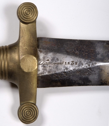 Pommeau, croisière et inscription sur la lameImmatriculation