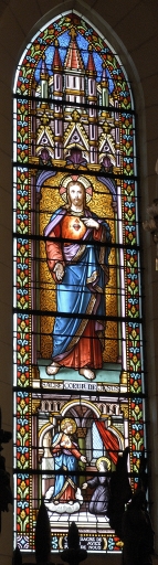 Ensemble des 9 verrières à personnages des baies 0 à 8 : Sacré Coeur, Saint Méen, Saint Laurent, Saint Lunaire, Saint Isidore, Saint François d'Assise, Saint Louis de Gonzague, Vie de la Vierge, et des 7 verrières décoratives de la nef,