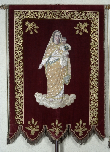 Bannière de procession paroisiale : Le Bon Pasteur ; Vierge à l'Enfant,