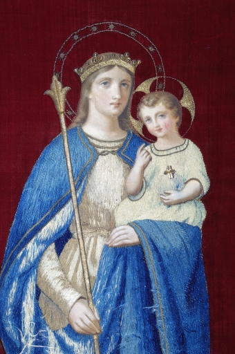 Bannière de procession paroissiale : Saint Pierre, Vierge à l'Enfant,