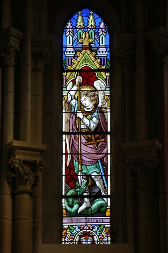 Ensemble des 30 verrières à personnages des baies 1 à 8, 11 à 18, 00, 100 à 102, 107 à 112, 124, et des 13 verrières décoratives des baies 9, 10, 103 à 106, 113 à 119,