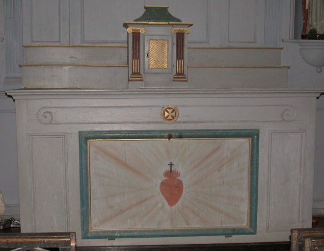 Ensemble de l'autel : autel, retable, 2 gradins d'autel, 2 degrés d'autel,
