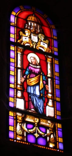 Ensemble de la verrière à personnages de la baie 0 : Immaculée Conception et des 6 verrières décoratives des baies 1 à 5 et 00,