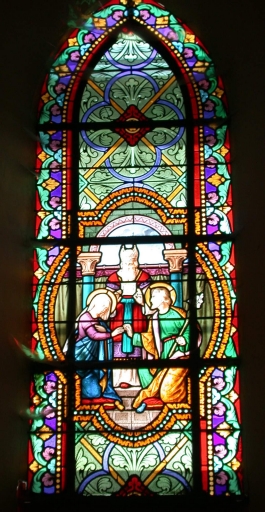 Ensemble des verrières de la nef : Scènes de la vie de la Vierge et verrières décoratives,